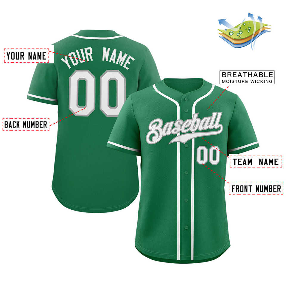 เสื้อเบสบอลแท้สไตล์คลาสสิกสีเขียวเคลลี่สีขาว-เทาแบบกำหนดเอง