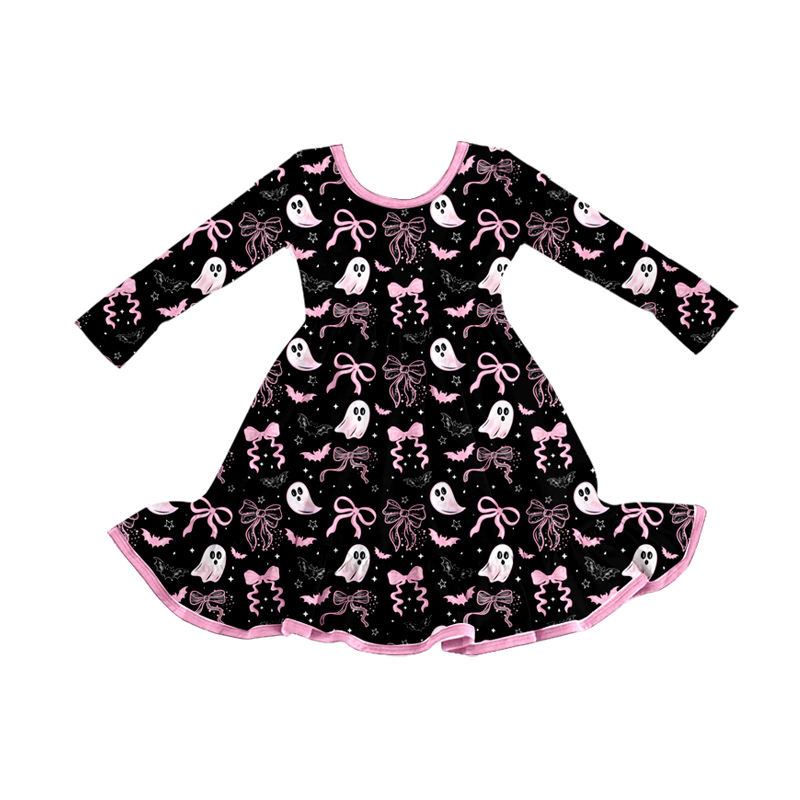 ชุดเดรสบูติกแขนยาวสำหรับเด็กผู้หญิงชุดเดรสวันขอบคุณพระเจ้ายาวถึงเข่าลายฟักทอง