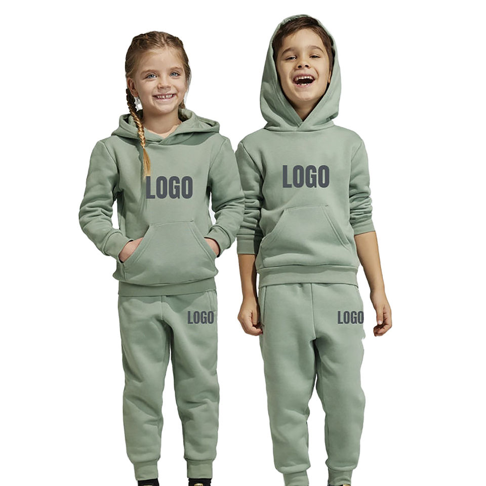 ชุดวอร์มผ้าคอตตอนใส่สบายพิมพ์โลโก้ส่วนตัวพร้อมฮู้ดและกางเกงจ็อกเกอร์สำหรับเด็กออกแบบได้ตามต้องการ