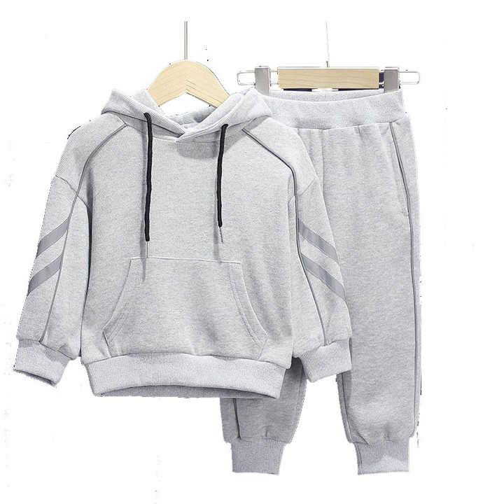 Custom Kids Tracksuit with Hooded Zipper Breathable Solid Pattern Printed and Washed Plus Size Collection