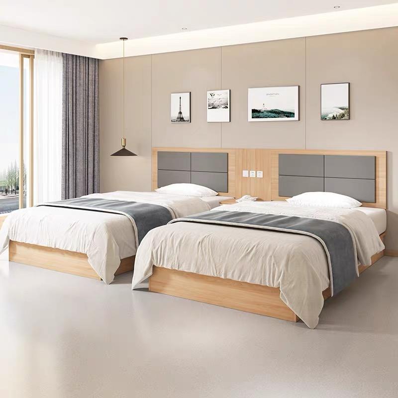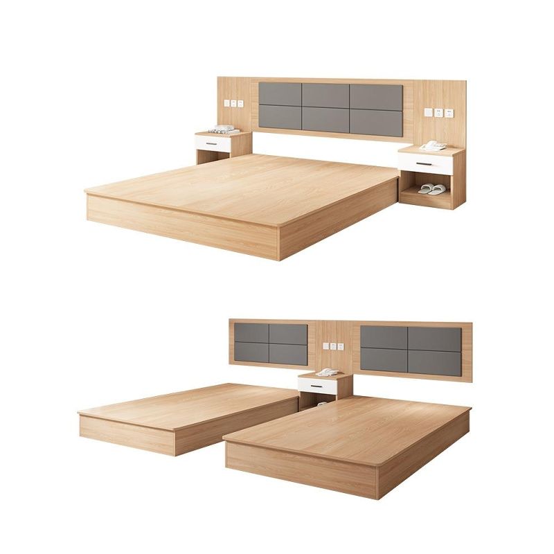 ชุดเตียงไม้และโต๊ะข้างเตียงในโรงแรมที่พักหัวเตียงเตียงขนาดควีนไซส์ตามสั่ง