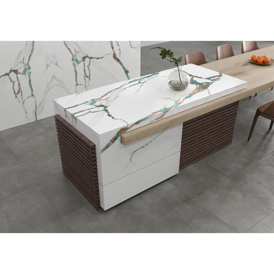 เคาน์เตอร์ครัวและห้องน้ำแบบสั่งทำพิเศษ หินควอตซ์ Calacatta สำหรับโครงการโรงแรม พร้อมบริการตัดสำเร็จรูป