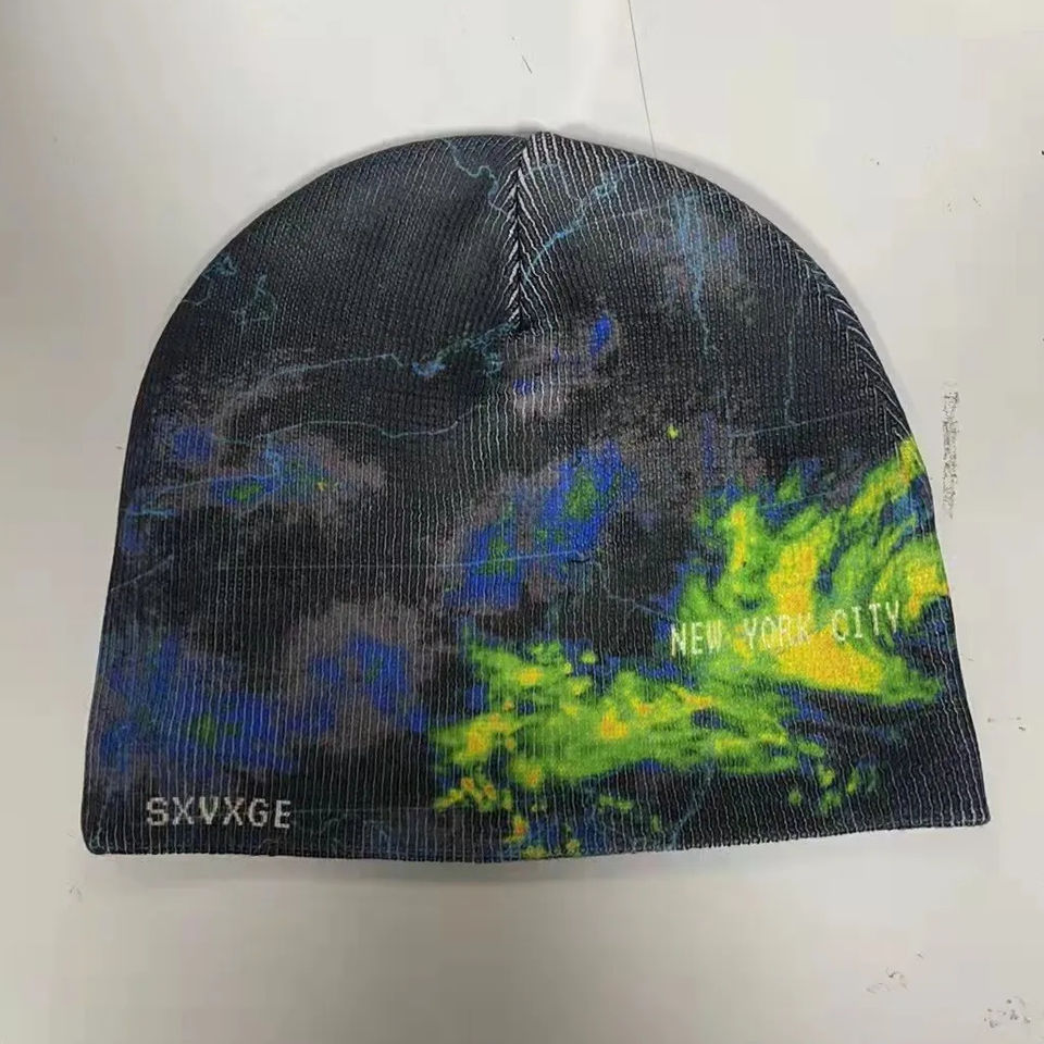 หมวกบีนนี่อะคริลิคแจ็คการ์ดกลับด้านได้พิมพ์ลายเต็มตัวสำหรับท่องเที่ยวชายหาดฤดูหนาว
