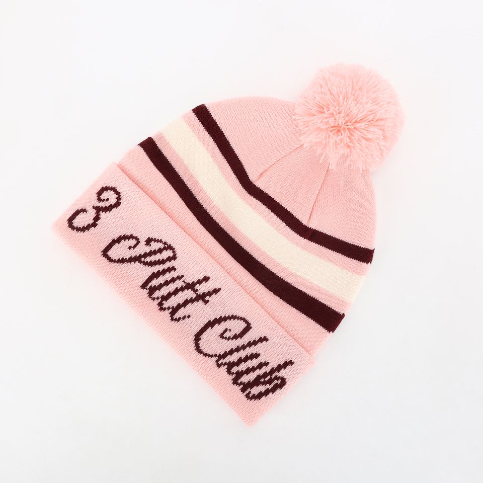 หมวกถักลายโลโก้แจ็คการ์ดสำหรับฤดูหนาวกำหนดเองได้สำหรับรักษาความอบอุ่นในสไตล์ปอมปอมปอม