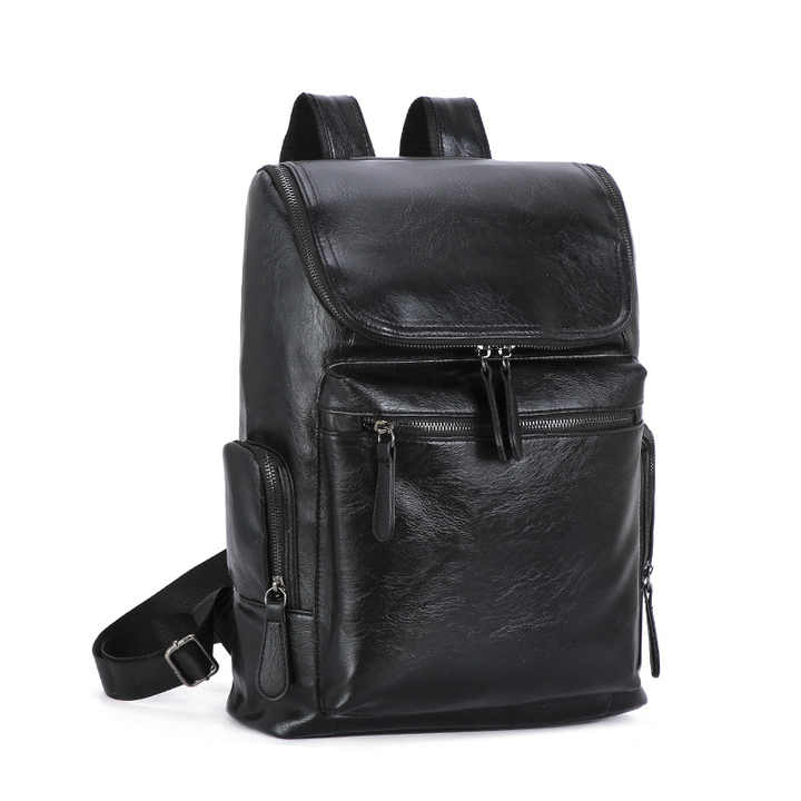 Custom Korea Style Fashion Waterproof Black Pu Leather Unisex Travel Backpack with 20-35L Capacity and Physiological Curve Back