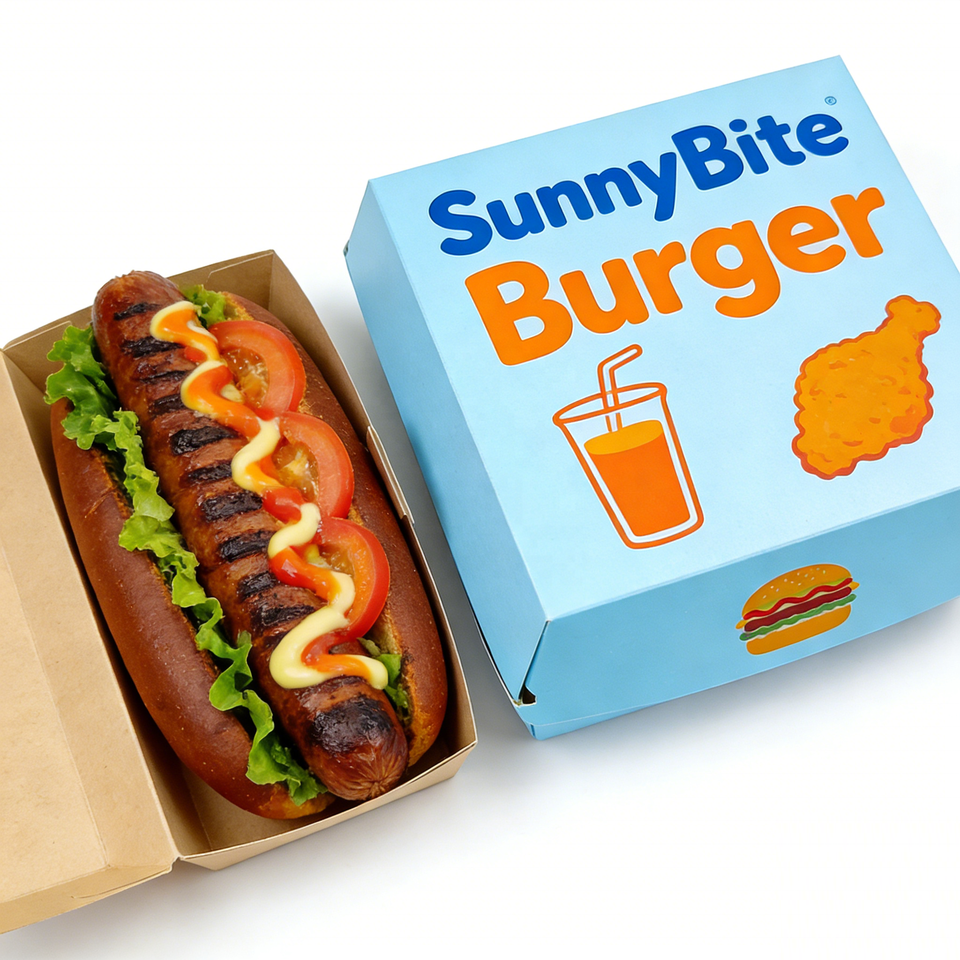 กล่องกระดาษใส่อาหารแบบใช้แล้วทิ้งสำหรับฮอทดอกเกาหลีแบบกำหนดเอง พร้อมเคลือบ UV แบบด้าน ย่อยสลายได้ทางชีวภาพ