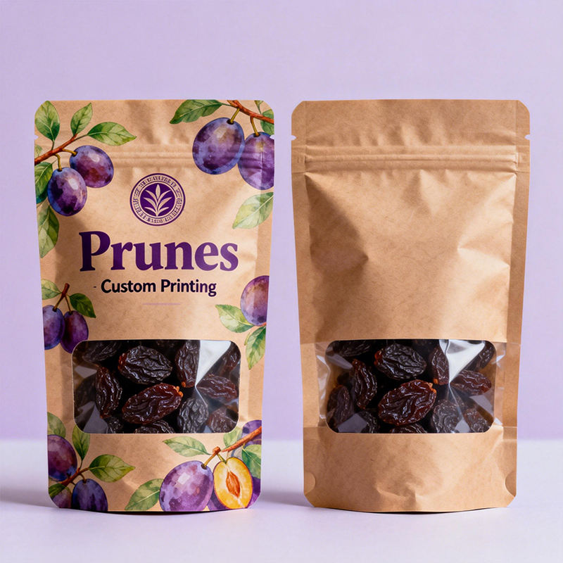 Custom Kraft Paper Prune Dried Fruit Bags Clear Window