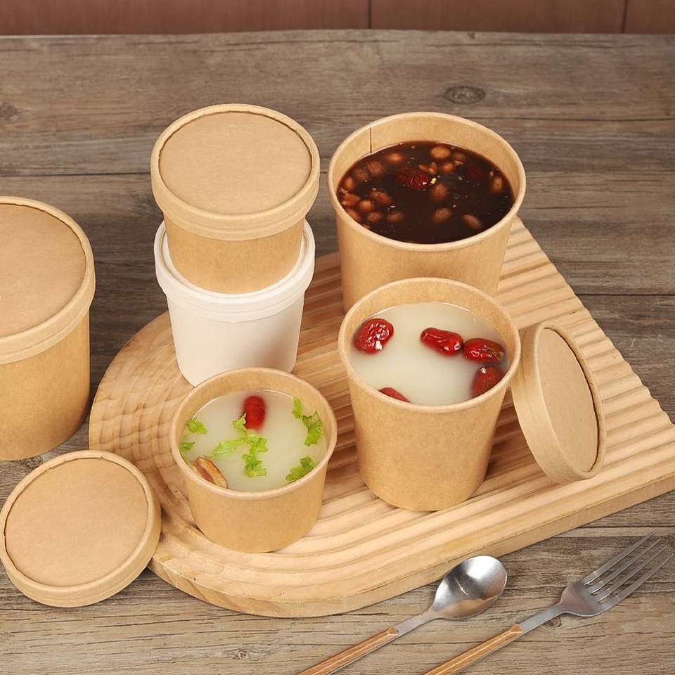 Custom Kraft Paper Soup Bowls Food Grade Disposable Packaging for Soup Hot Food With Lids Eco-Friendly Bowls for Catering