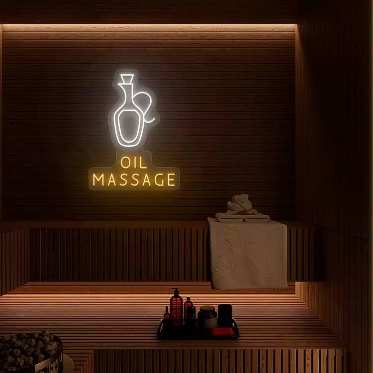 ป้ายไฟนีออน LED แบบกำหนดเองสำหรับร้านนวด - ป้ายอะคริลิกกันน้ำพร้อมการพิมพ์ UV, ป้ายไฟนีออนปรับแต่งได้
