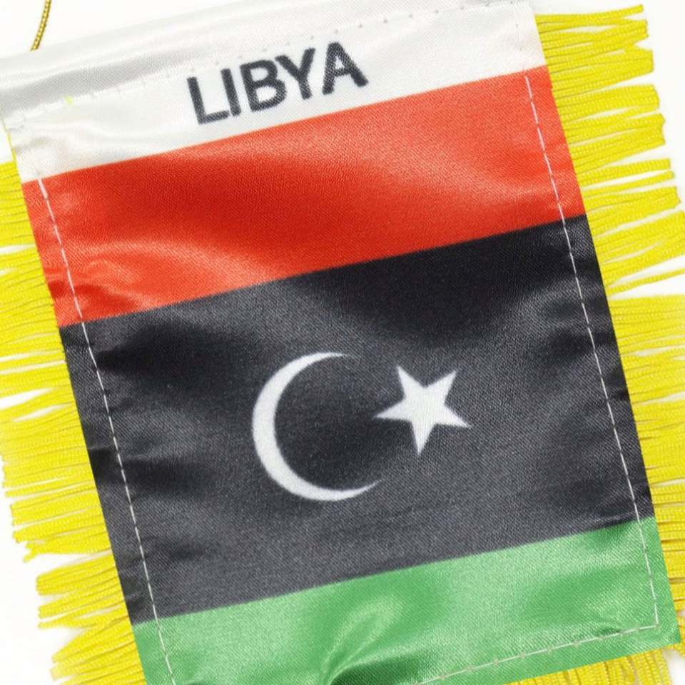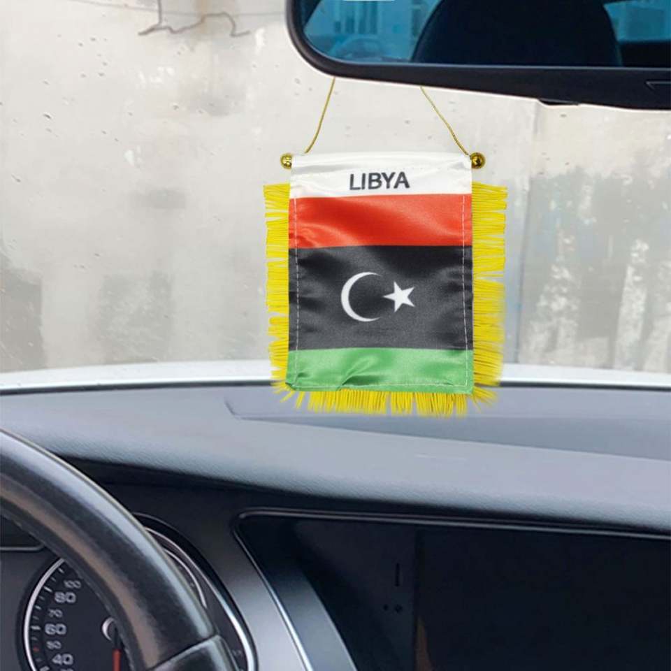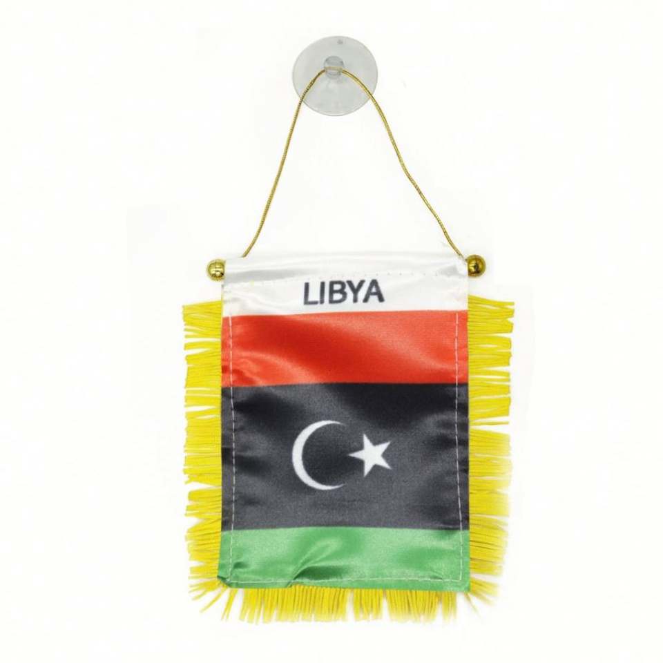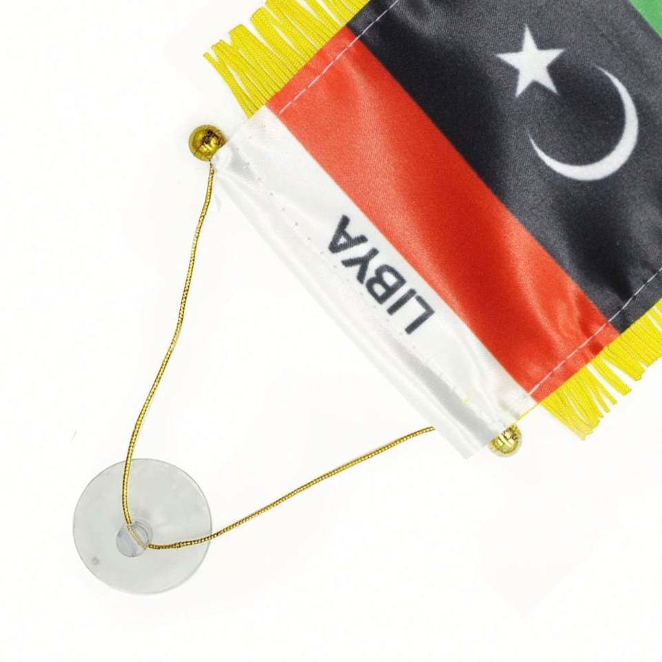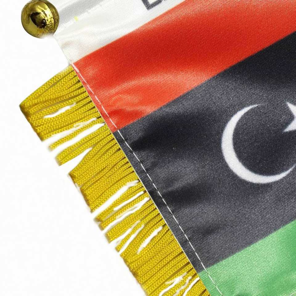 ธงซาตินลิเบียแบบกำหนดเอง ธงติดรถยนต์ขนาดเล็ก พร้อมพู่สีเหลือง