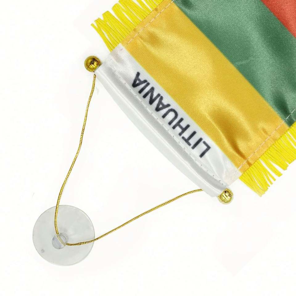ธงซาตินลิทัวเนียแบบกำหนดเอง ธงติดรถยนต์ขนาดเล็ก พร้อมพู่สีเหลือง