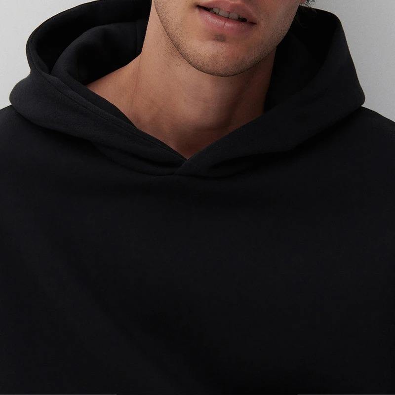 เสื้อกันหนาวมีฮู้ดสีทึบของผู้ชายผ้าคอตตอนลำลองผ้าทอ400GSM โอเวอร์ไซส์ผ้าเทอร์รี่ใส่ฤดูใบไม้ร่วงฤดูหนาวโลโก้กำหนดเอง