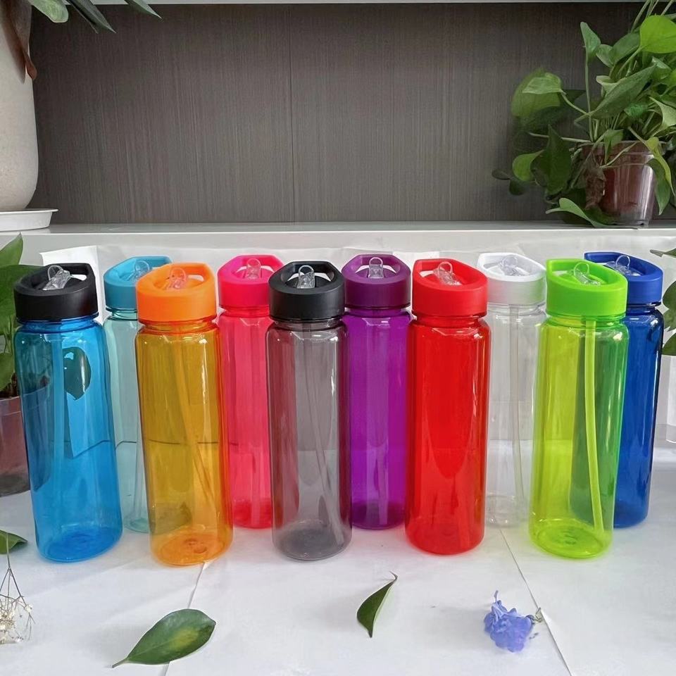 แก้วน้ำพลาสติก700มล. พร้อมฝาและหลอดสำหรับเด็กไม่มี BPA ขวดน้ำแนวสปอร์ตออกแบบโลโก้ได้ตามต้องการ