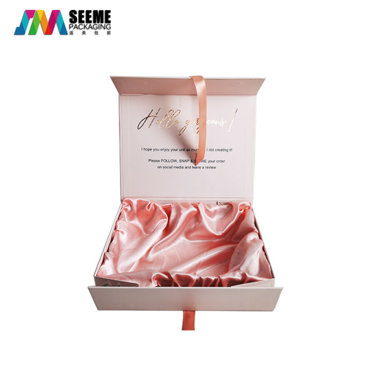 กล่องใส่เครื่องแต่งกายวิกผมแม่เหล็กสุดหรู,กล่องบรรจุภัณฑ์สำหรับต่อผมพิมพ์ลายผ้าไหมซาตินเลือกโลโก้ได้ตามต้องการ