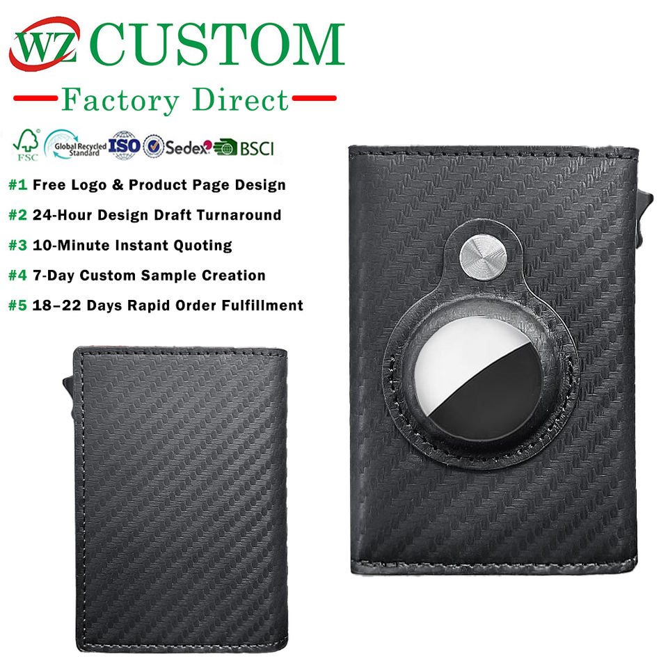 ออกแบบโลโก้ตามสั่ง กระเป๋าสตางค์แบบพับสามตอนสำหรับใส่ AirTag พร้อมช่องใส่บัตรหนังแบบป๊อปอัพ และช่องใส่บัตรประจำตัวแบบโปร่งใส