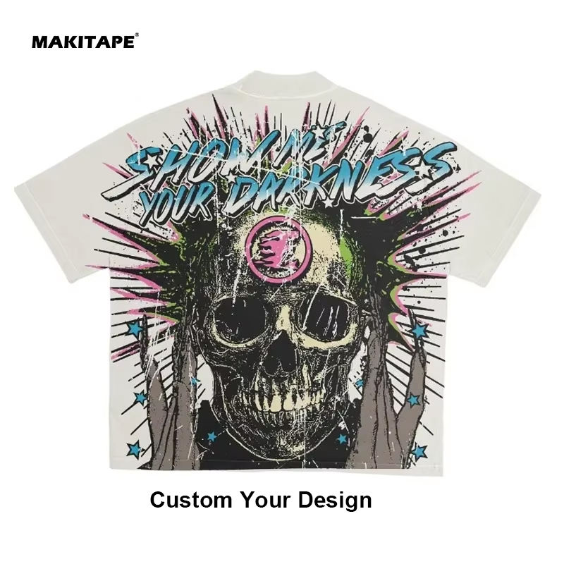 เสื้อยืดผู้ชายพิมพ์ลายนามธรรม 230GSM พิมพ์โลโก้ตามสั่ง ทรงโอเวอร์ไซส์ ผ้าฝ้าย สไตล์ฮิปฮอป