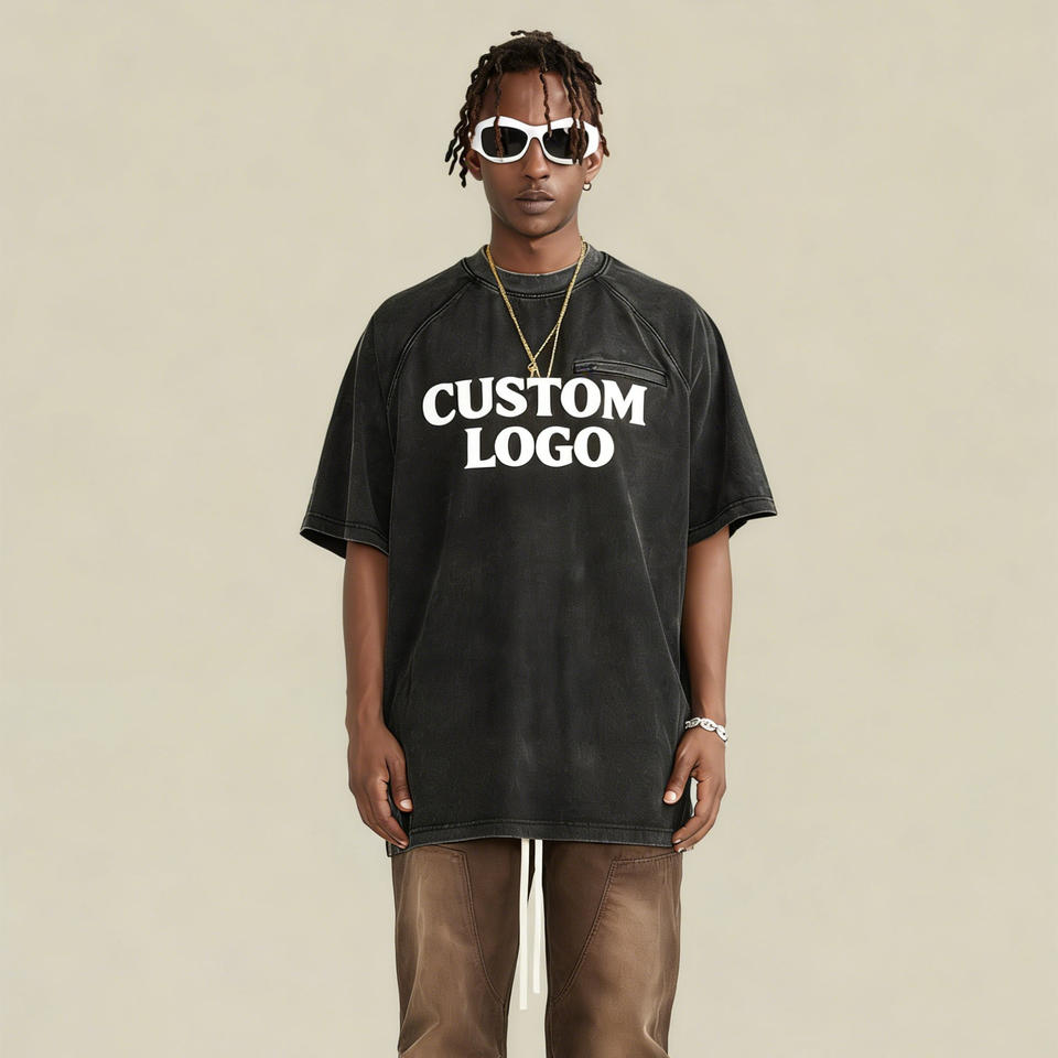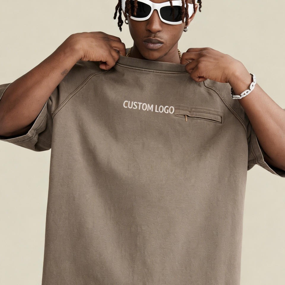 เสื้อยืดออกกำลังกายผู้ชาย ผ้าฝ้าย 100% ทรงโอเวอร์ไซส์ แขนสั้น ทรงบ็อกซี่ ซับเหงื่อ แห้งเร็ว น้ำหนัก 210 กรัม รับสกรีนโลโก้