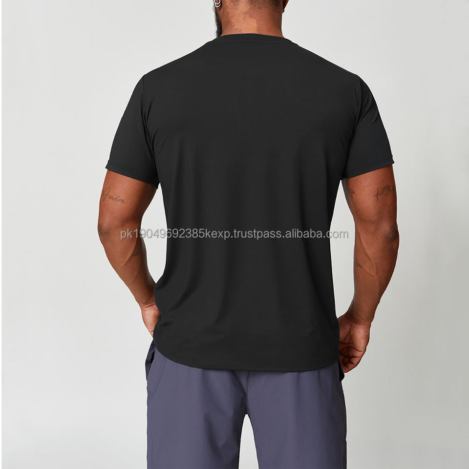 เสื้อยืดออกกำลังกายผู้ชายสำหรับฤดูร้อน พิมพ์โลโก้ได้ น้ำหนักเบา สวมใส่สบาย ผลิตจากโพลีเอสเตอร์ 88% สแปนเด็กซ์ 12% สีพื้น แขนสั้น