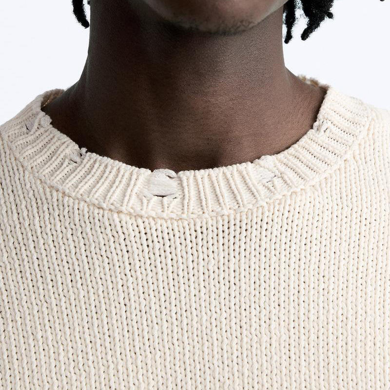 เสื้อสเวตเตอร์แบบสวมหัวคอกลมสำหรับผู้ชายเสื้อถักแขนยาวผ้าคอตตอนทรงหลวมเสื้อสเวตเตอร์ดีไซน์เนอร์สำหรับผู้ชายโลโก้ออกแบบได้ตามต้องการ