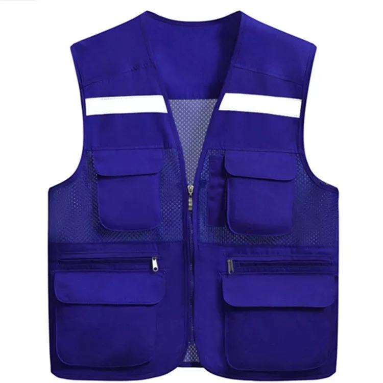 เสื้อแจ็กเก็ตสะท้อนแสงมองเห็นได้ชัดเจนหลายกระเป๋าเสื้อกั๊กนิรภัย Hi-Vis สำหรับใส่ทำงาน