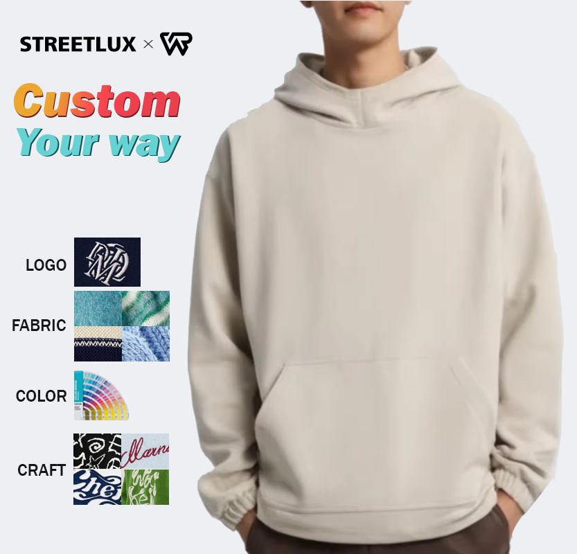 เสื้อฮู้ดขนแกะถักของผู้ชายแบบ3D พรีเมี่ยมปักกันริ้วรอยกันหด500กรัมน้ำหนักหนักแบบ DIY ย้อมสี