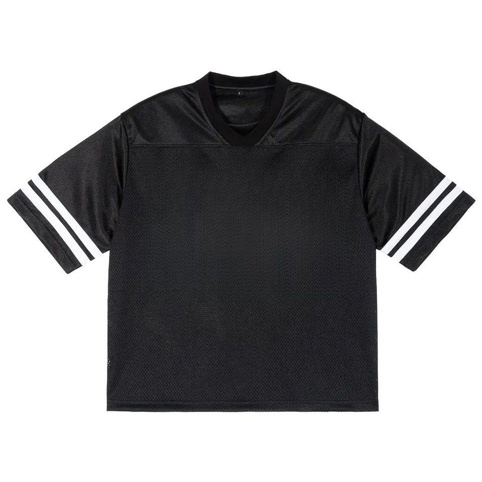เสื้อกีฬาตาข่ายลายทางสำหรับผู้ชายเสื้อครอปตาข่ายผ้าโพลีเอสเตอร์ระบายอากาศ