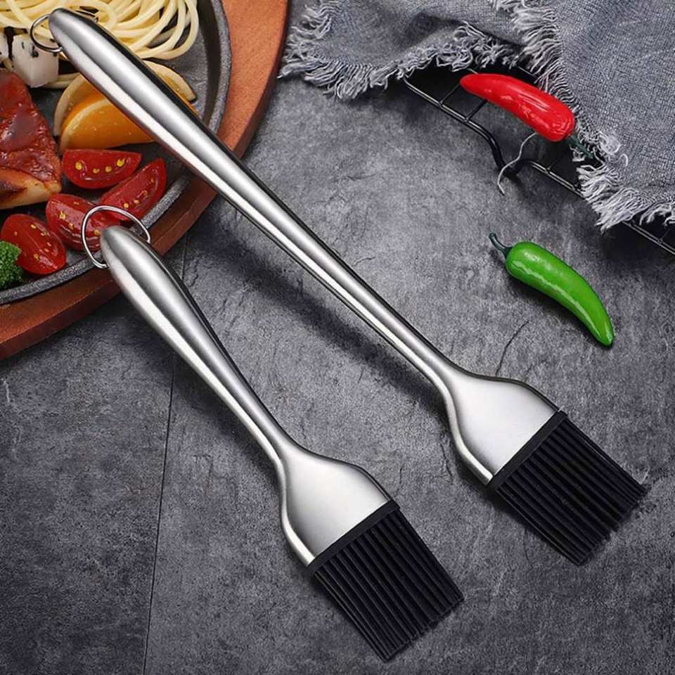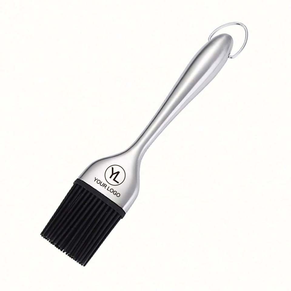 แปรงทาเนย/น้ำมันทำขนม ด้ามยาว สแตนเลส หัวแปรงซิลิโคน สำหรับย่างบาร์บีคิว อบขนม ปลอดภัยสำหรับเครื่องล้างจาน พร้อมโลโก้สั่งทำได้