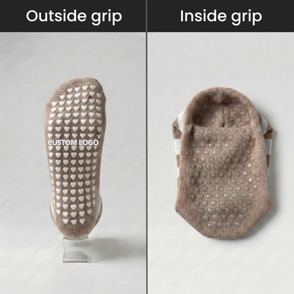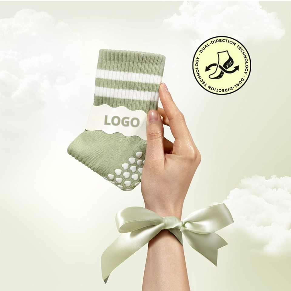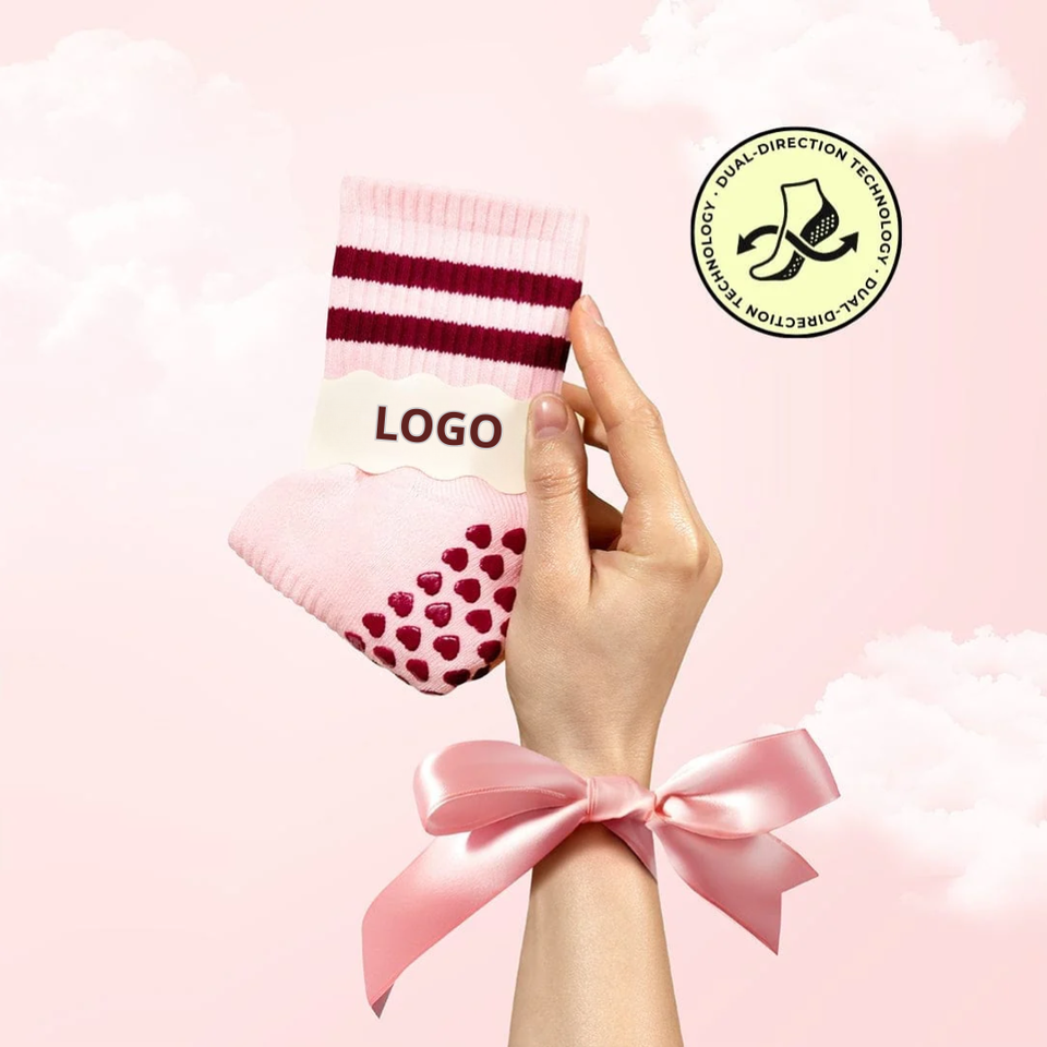 ถุงเท้าพิลาทิสโลโก้สั่งทำพิเศษ ป้องกันการลื่นสองทิศทาง สำหรับผู้หญิง โยคะ บาร์เร ออกกำลังกายในร่ม ใช้ได้ทุกวัน ผ้าฝ้าย 100% ออกแบบฟรี