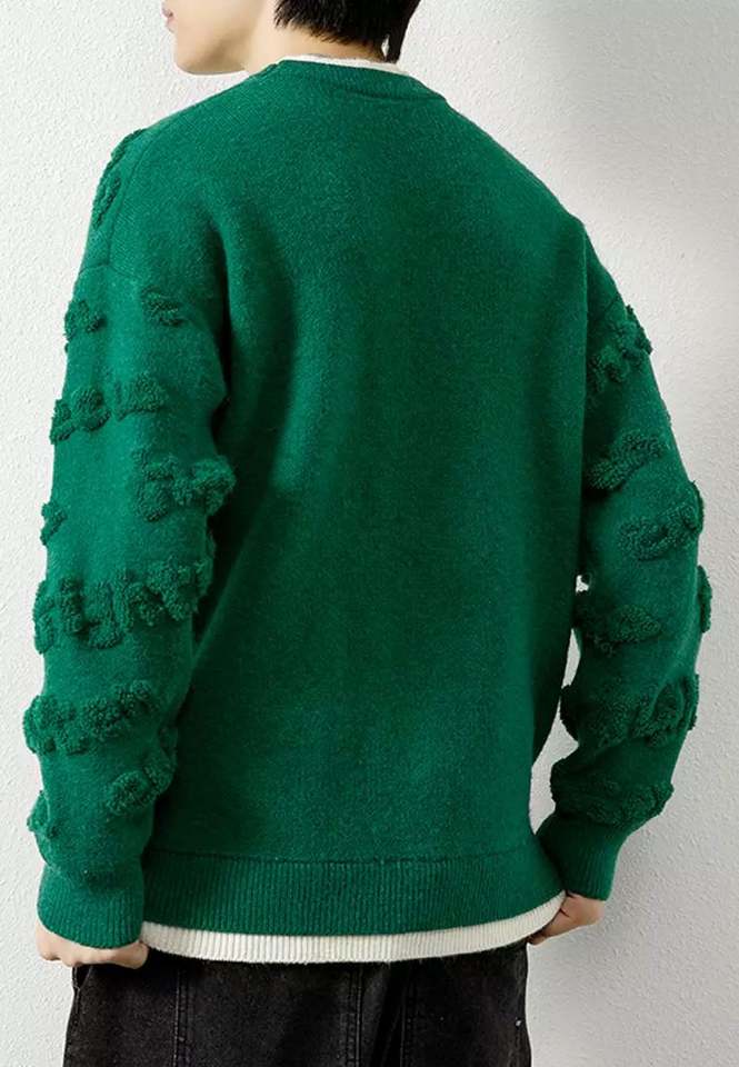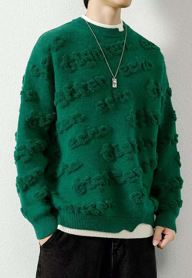 สเวตเตอร์ผ้ากำมะหยี่หนาสำหรับผู้ชายเสื้อสเวตเตอร์สวมหัวคอกลมแขนยาวปักโลโก้ตามสมัยนิยม