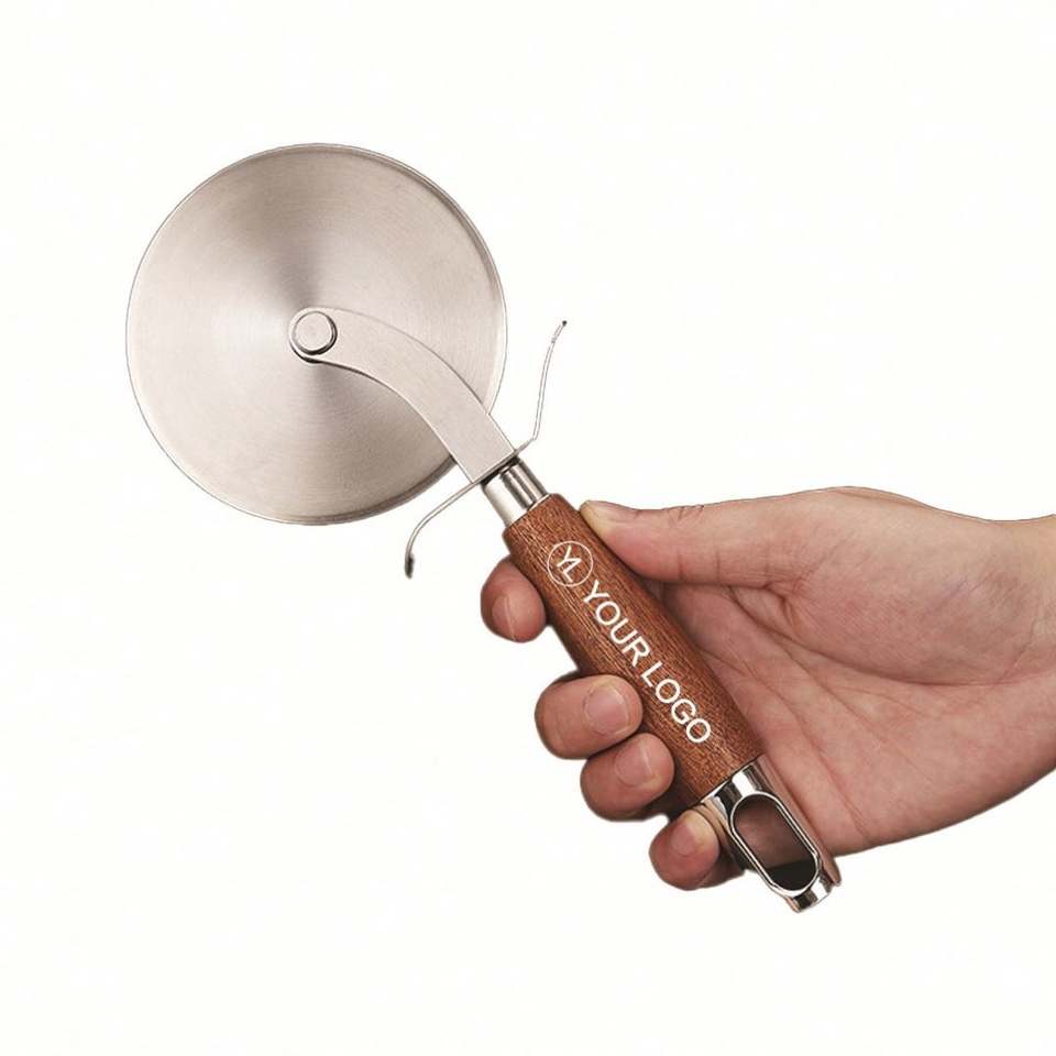 ที่ตัดพิซซ่าแบบล้อ สแตนเลสสตีลคมกริบ ด้ามจับไม้แบบคลาสสิก พร้อมโลโก้สั่งทำพิเศษ คุณภาพพรีเมียม