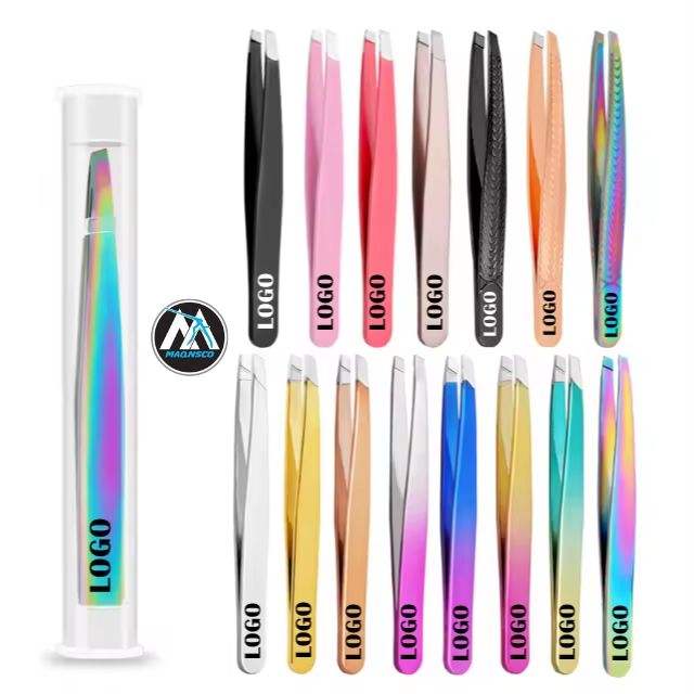 ชุดแหนบคิ้วสแตนเลสสีโรสโกลด์ปรับแต่งโลโก้ใหม่สำหรับกำจัดขนคิ้วเครื่องมือและอุปกรณ์เครื่องประดับ