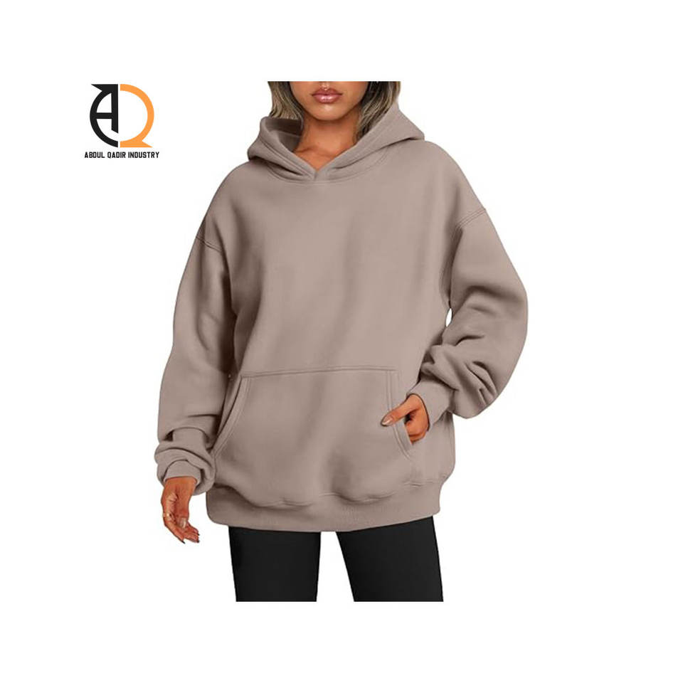 เสื้อกันหนาวสวมหัวทรงหลวมมีฮู้ดสำหรับผู้หญิงโลโก้แบบกำหนดเอง