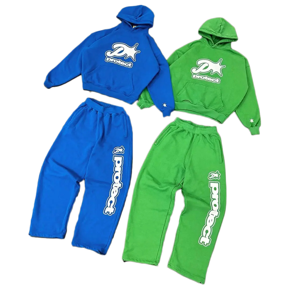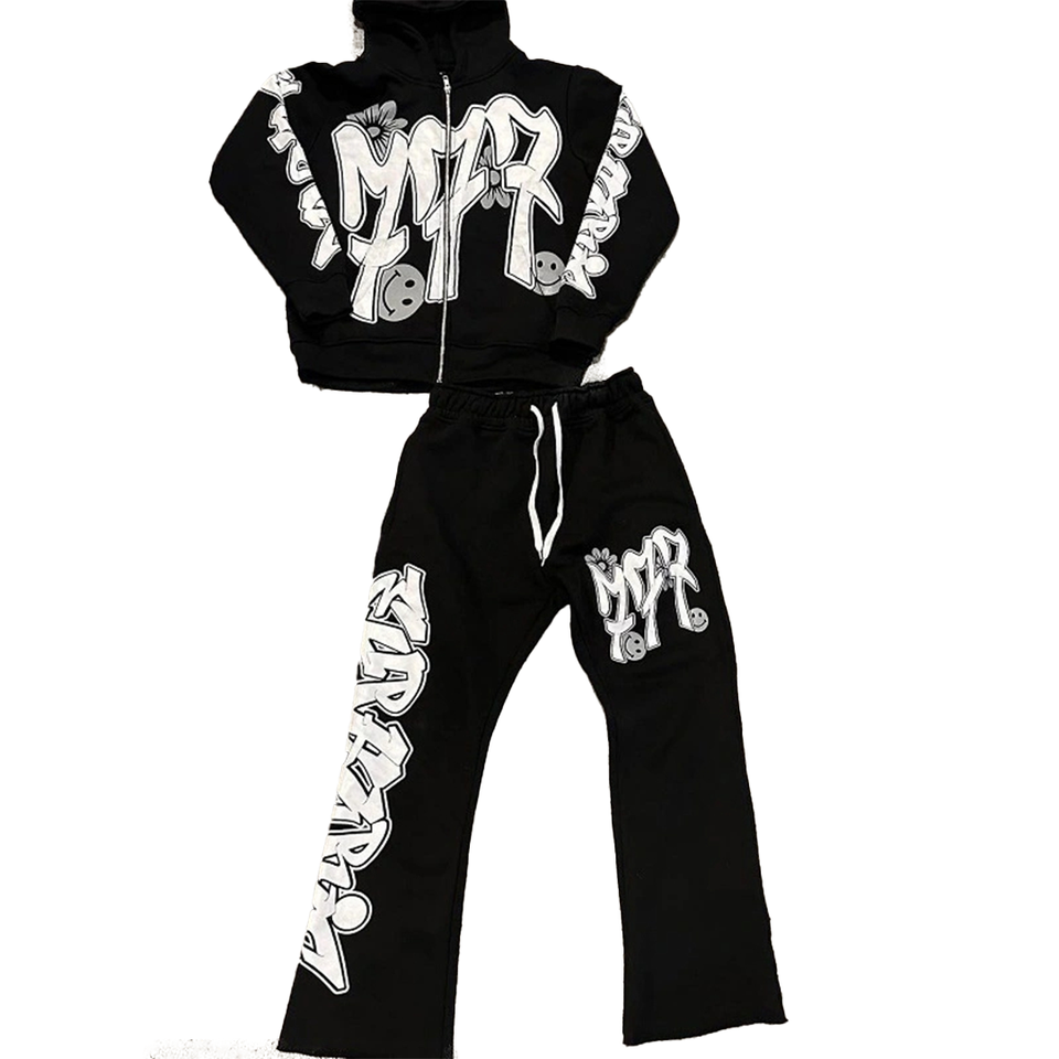 ชุดวอร์มแยกชิ้นแบบฮิปฮอปผ้าคอตตอน100% โลโก้ได้ตามต้องการผ้าฟลีซปักลายสำหรับฤดูหนาว