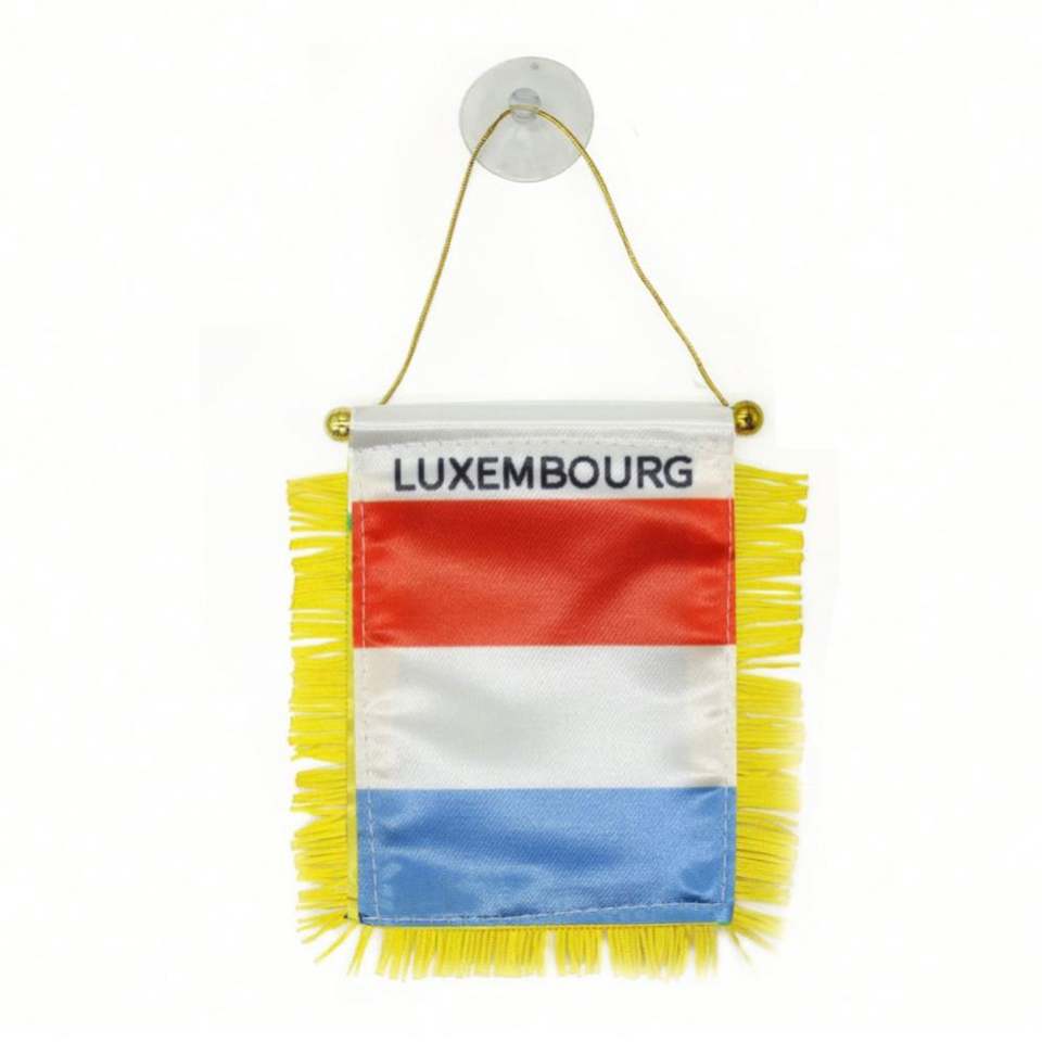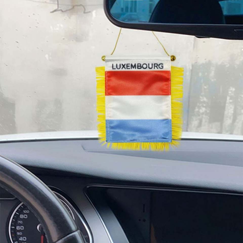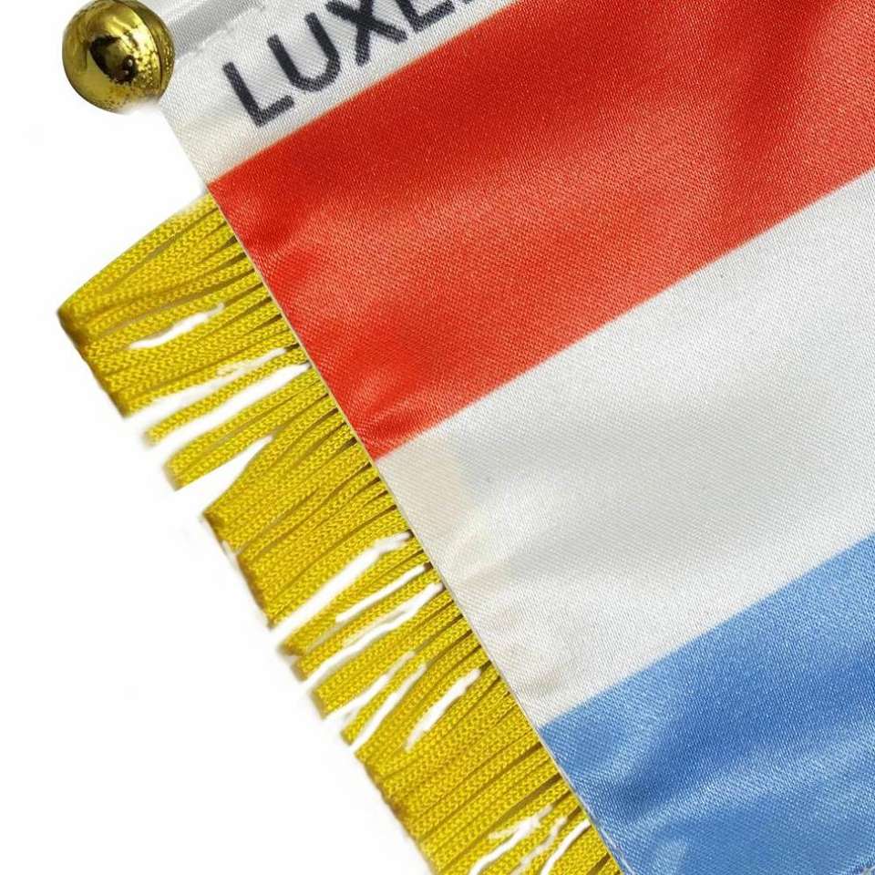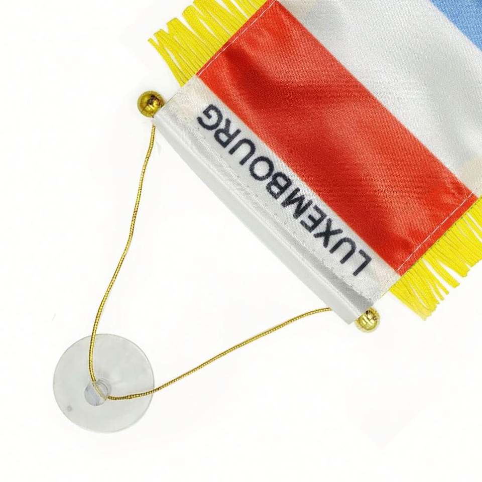 ธงซาตินลักเซมเบิร์กแบบกำหนดเอง ธงขนาดเล็กสำหรับรถยนต์ พร้อมพู่สีเหลือง