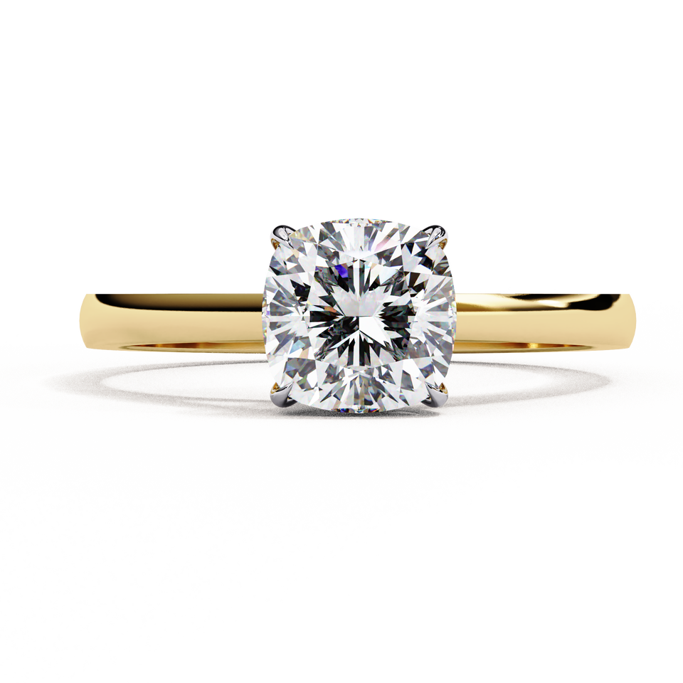เครื่องประดับเพชรเพาะเลี้ยงแบบกำหนดเอง ขายส่ง แหวนเพชรแท้ 18K ดีไซน์โซลิแทร์ 1.50 กะรัต ทรงคุชชั่น สำหรับคู่รัก