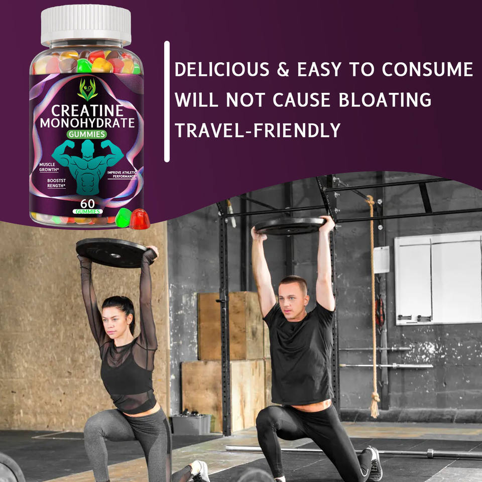 อาหารเสริม Creatine monohydrate gummies ฉลากที่กำหนดเองช่วยเพิ่มการรมควันของสมองและเพิ่มระดับพลังงาน