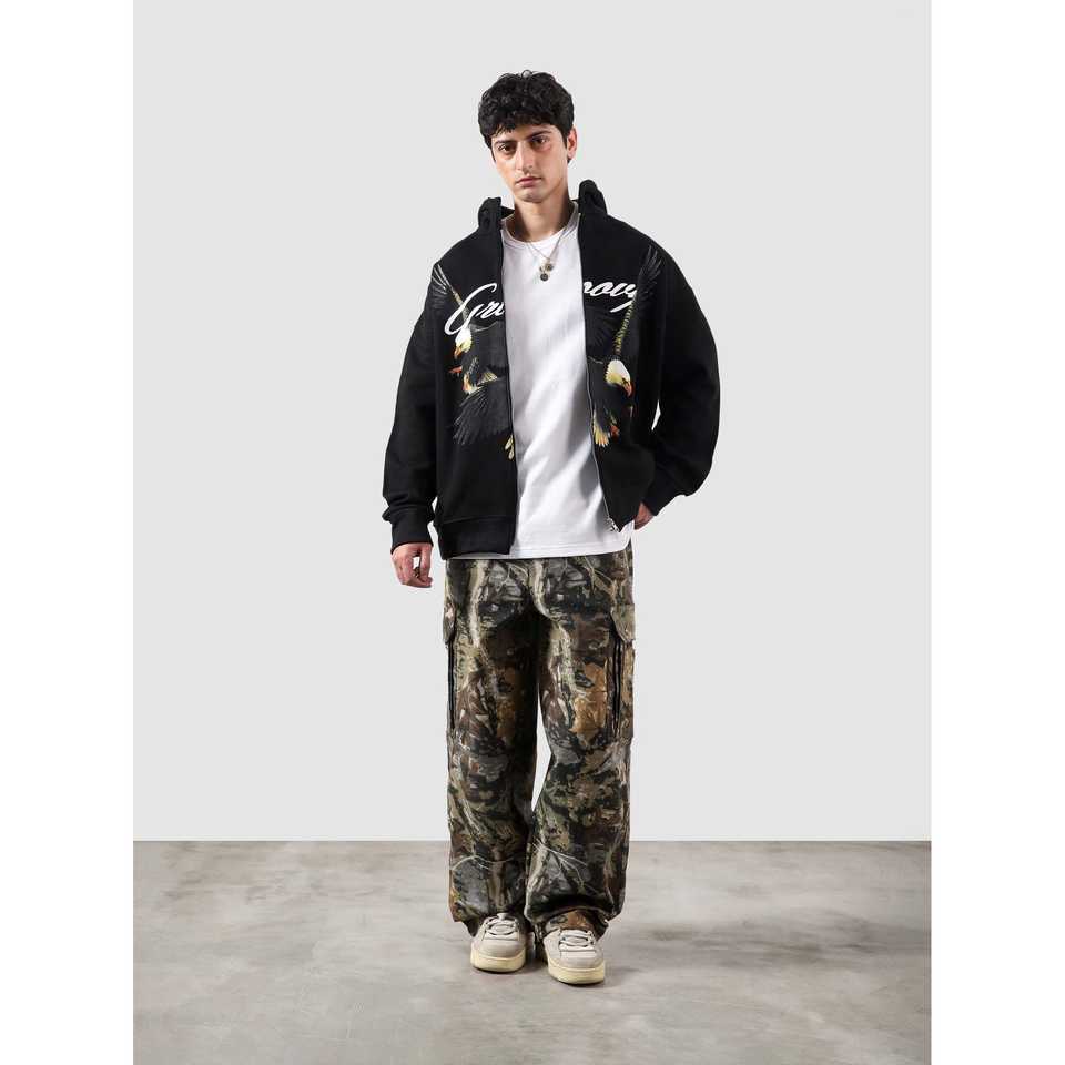 เสื้อฮู้ดซิป Flying Predator แบบสั่งทำพิเศษ ผ้าเฟรนช์เทอร์รี่สำหรับฤดูหนาว สตรีทแวร์ ปักลาย 3 มิติ ไซส์ XXS ถึง 6XL พิมพ์ลายสกรีนสีพื้น