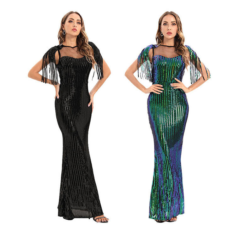ชื่อผลิตภัณฑ์:เดรสยาวปักเลื่อมสำหรับงานกลางคืนเดรสเซ็กซี่มีพู่เงา