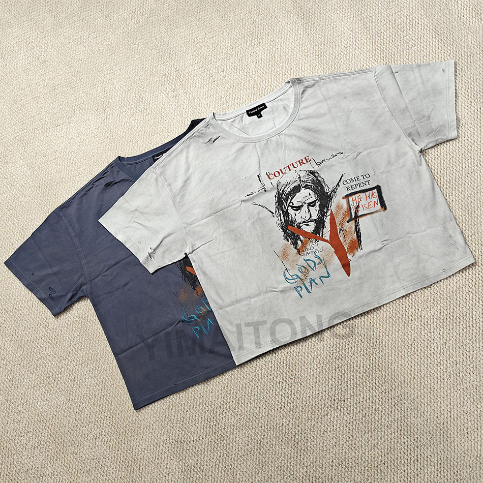 เสื้อยืดผู้ชายผ้าฝ้ายวินเทจแต่งลายพิมพ์ DTG โลโก้พิมพ์ลายกราฟิก DTG สกปรก