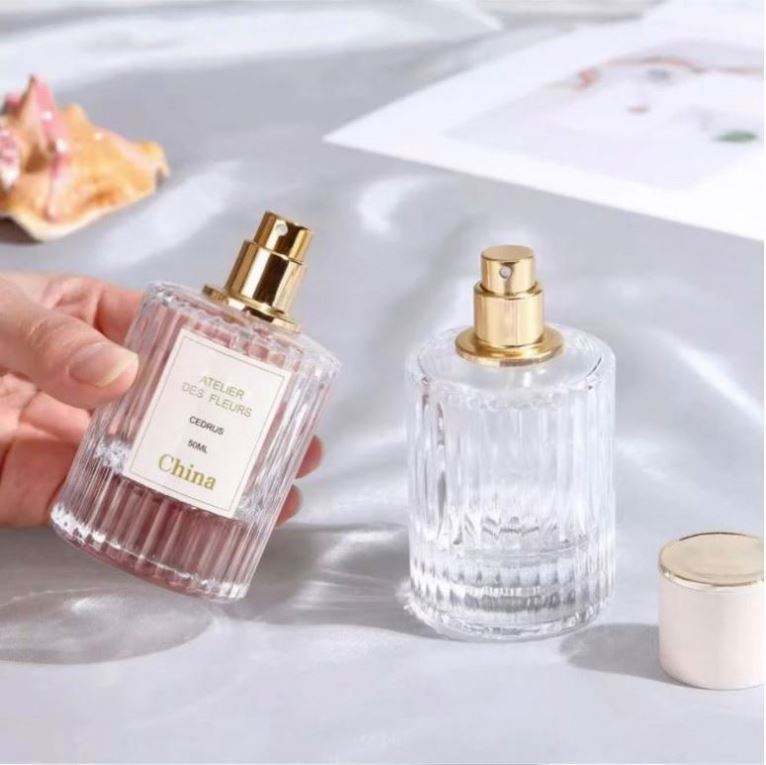 ขวดน้ำหอมแก้วฝ้าทรงกระบอกหนาใส ขนาด 30 มล. 50 มล. 100 มล. พร้อมกล่อง บรรจุภัณฑ์หรูหรา สกรีนโลโก้ตามสั่ง