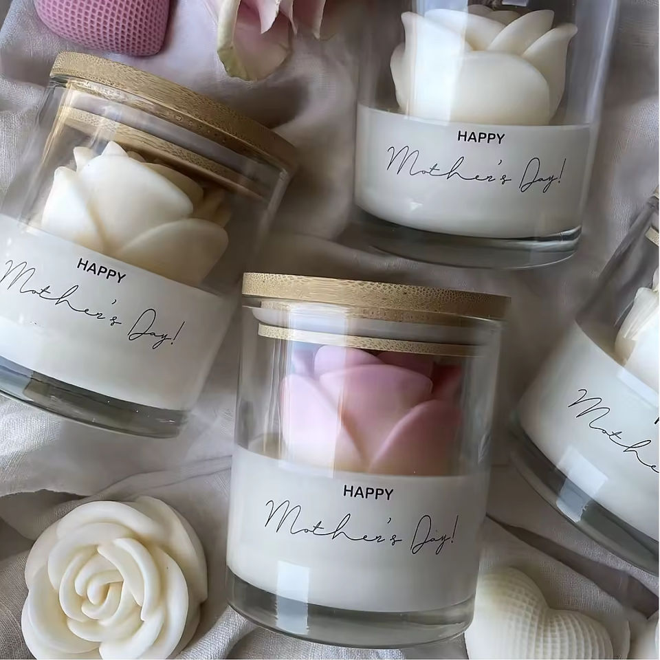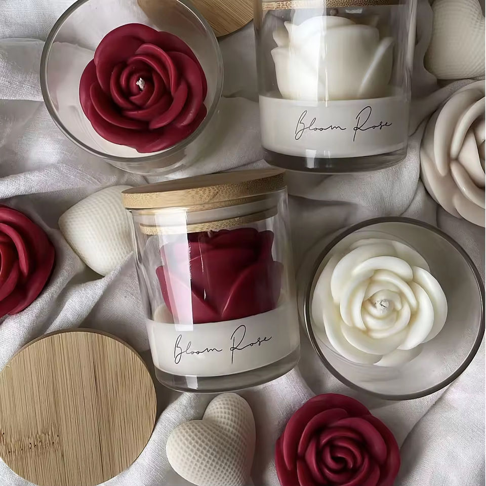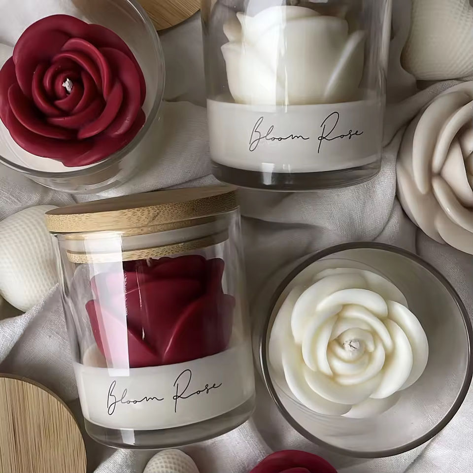 เทียนหอมรูปดอกกุหลาบแบบกำหนดเอง เทียนไขถั่วเหลืองในแก้วใส เทียนหอมหรูหรา กลิ่นหอมมีระดับ สำหรับตกแต่งบ้าน ของขวัญสำหรับองค์กร