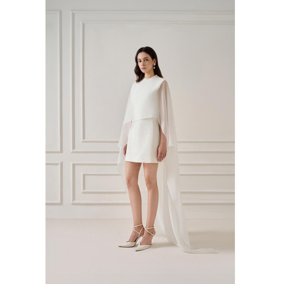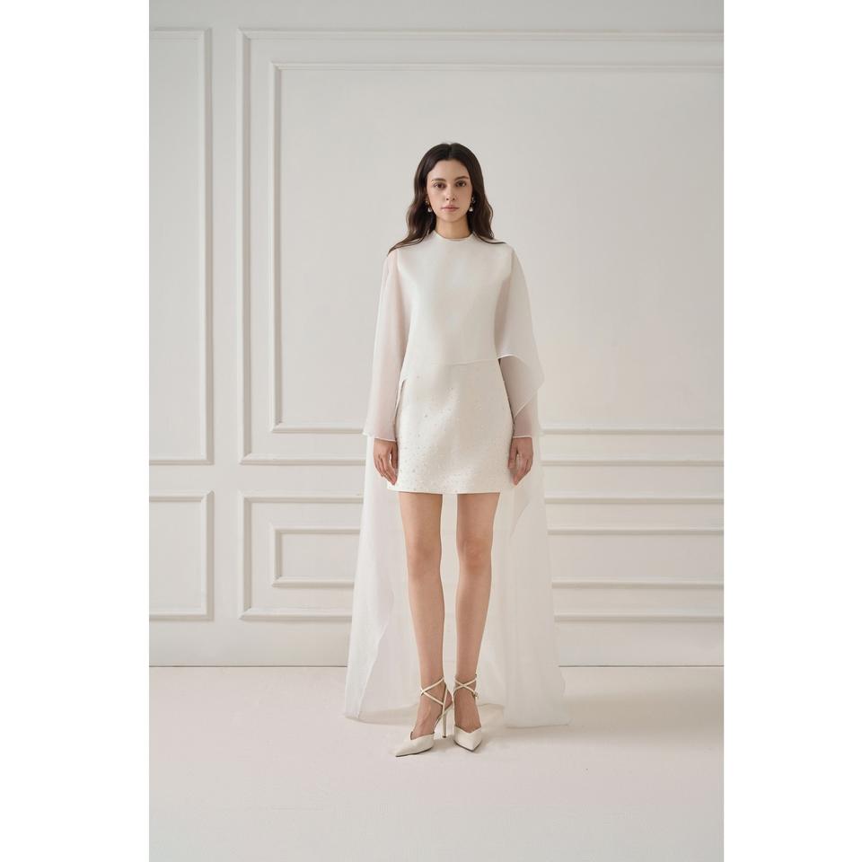 ชุดเดรสสั้น jilna EMB ชุดเดรสแขนกุดทรงเอไลน์สำหรับผู้หญิงลำลองจากแบรนด์สีขาวของเวียดนามสั่งติดป้ายได้ตามต้องการ