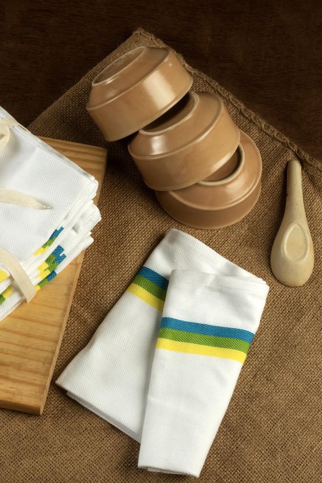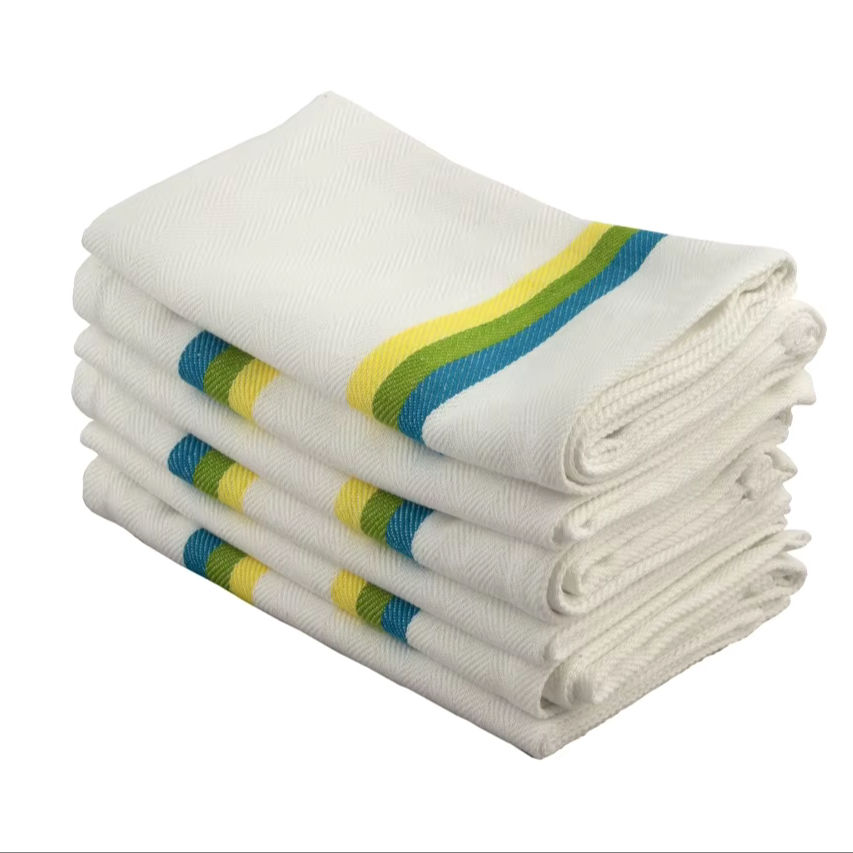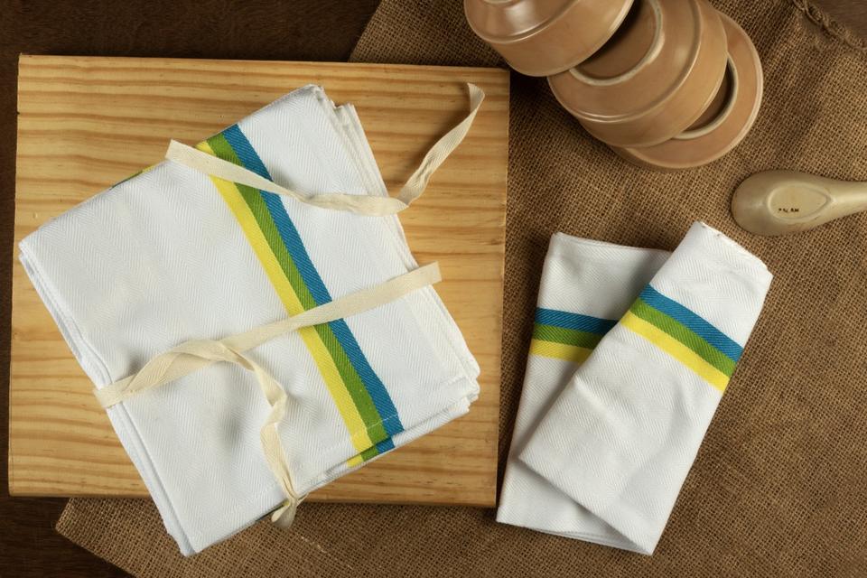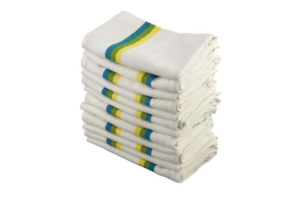 ผ้าเช็ดครัวทรงสี่เหลี่ยม ผลิตจากผ้าฝ้าย 100% เป็นมิตรกับสิ่งแวดล้อม ทอลายทาง ซักเครื่องได้ แห้งเร็ว ผลิตที่ทัมมิลนาฏูด