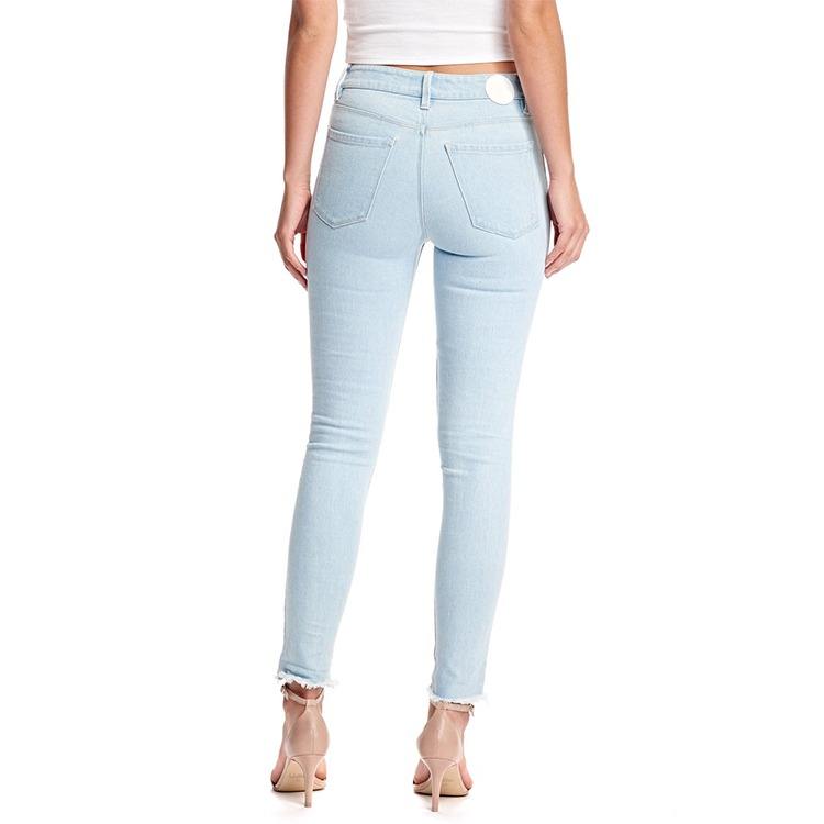 Custom Ladies Mid Waist Regular Fit Straight Casual Solid Denim Pants Eco-Friendly Organic Cotton Breathable Fashionable Pocket