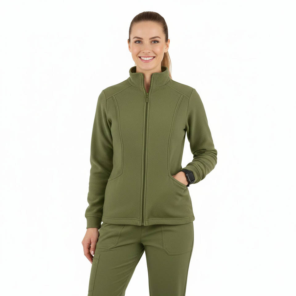 เสื้อสครับพยาบาลผู้หญิงแบบสั่งทำพิเศษ ซิปยาว แขนยาว ทรงเข้ารูป สำหรับคลินิกทันตกรรม ขายส่ง OEM