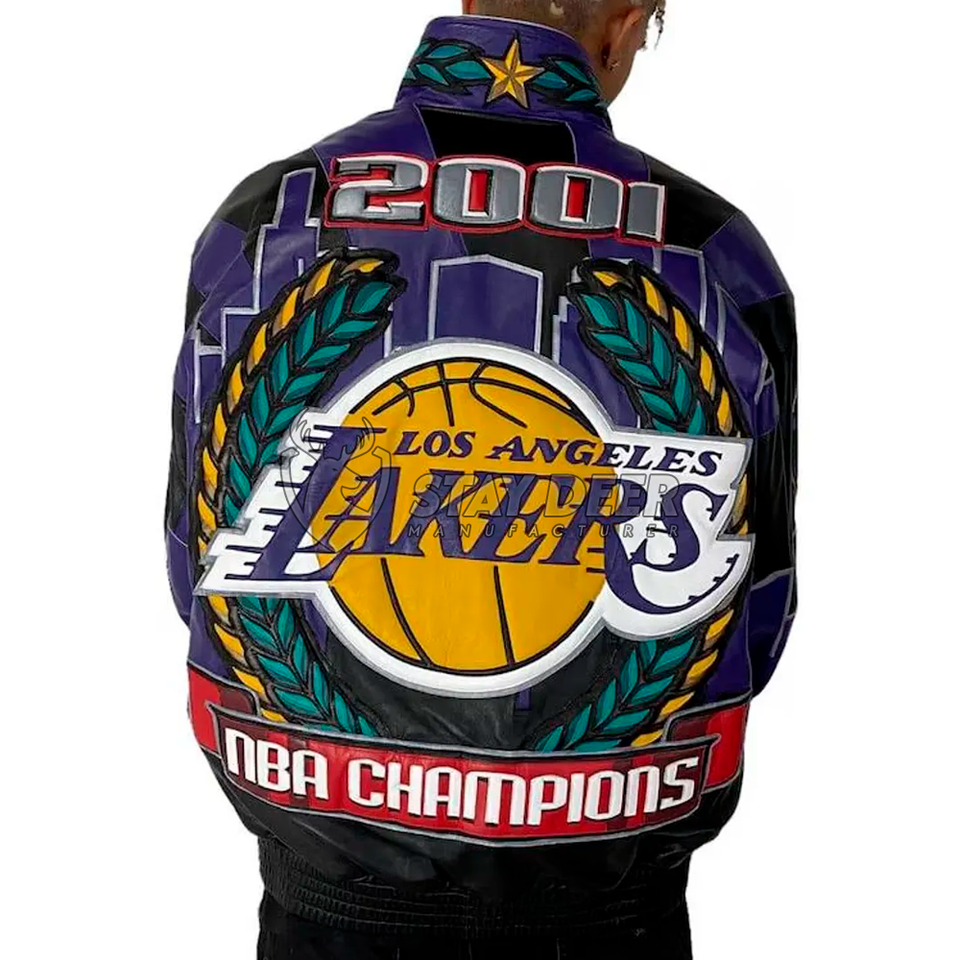 เสื้อแจ็คเก็ต Lakers แบบกำหนดเองสำหรับผู้ชาย แจ็คเก็ต Varsity แขนหนัง แจ็คเก็ต Letterman สำหรับฤดูหนาวและฤดูใบไม้ร่วง ปักโลโก้พร้อมส่ง รับผลิตแบบ OEM/ODM