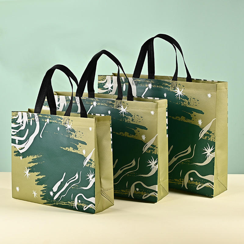 ถุงผ้าแคนวาสรีไซเคิลเคลือบพิมพ์ลายตามสั่ง เป็นมิตรกับสิ่งแวดล้อม สำหรับใส่สินค้าในซูเปอร์มาร์เก็ต บรรจุภัณฑ์เสื้อผ้า ของขวัญ ช้อปปิ้ง พร้อมหูหิ้ว ทำจากผ้าไม่ถักทอ