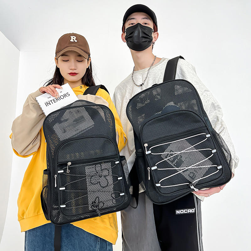 กระเป๋าเป้ตาข่ายใสขนาดใหญ่พิเศษ สำหรับนักเรียนนักศึกษา แบบกึ่งโปร่งแสง รับน้ำหนักได้มาก