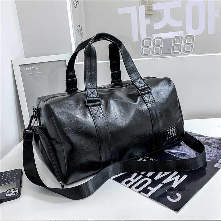 กระเป๋าออกกำลังกายผู้ชายหนัง PU ขนาดใหญ่พิเศษ แยกช่องแห้งเปียก กระเป๋าเดินทางพกพาสะดวก สำหรับเดินทางระยะสั้น ทันสมัย