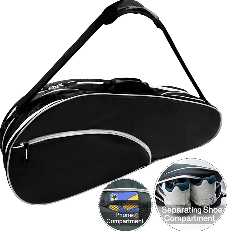 กระเป๋าใส่ไม้แบดมินตันและเทนนิสแบบสะพายข้างใบใหญ่ ความจุเยอะ สำหรับผู้หญิงและผู้ชาย กันน้ำ ใช้ได้กับไม้พาเดล